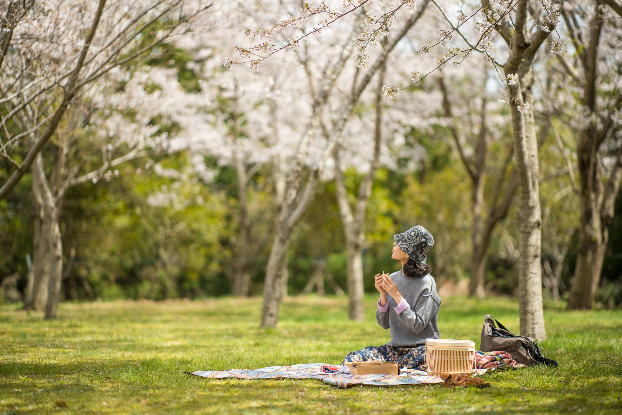 흩날리는 벚꽃 아래, 피크닉 박스를 즐겨보세요.